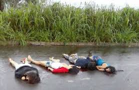 encontradas mortas uma ao lado da outra. Todas tinham ferimentos na
